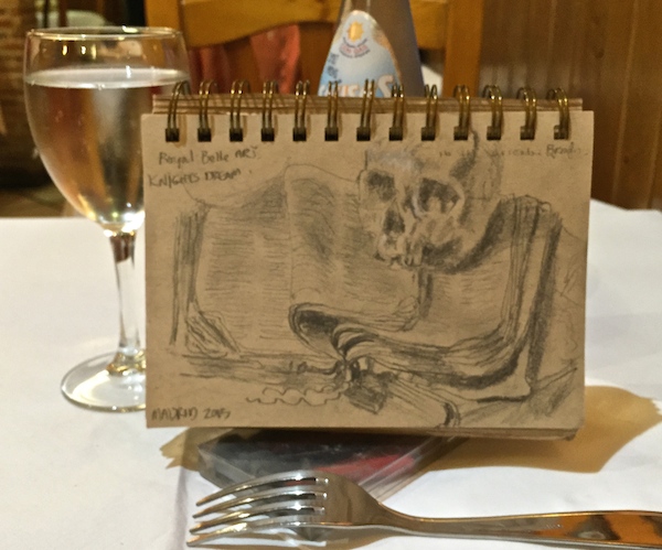 I write – on my iPhone – an email to my daughter and a few notes to myself, then I pull out my Nook and read. I soon discover that waves of tourists wash up in that front room, some hushed, some raucous. Everyone takes a selfie with the cat, whose poise is unshakable. A young man sits next to me and opens a book. After fifteen minutes or so, he asks me if I’m reading something interesting. He’s reading love poems, because, like all young men in Paris since the dawn of time, he is hoping to get some cherchez la femme leverage. Youth is truly wasted on the young, y’all. I advise that love poems aren’t a reliable field guide to women, but might help him hold onto one. It is a truth universally acknowledged that chicks dig romance. Surely he has no problem meeting women. Just strike up a conversation with any one of the pretty girls here. Too transitory, he says glumly. Plus he can only muster the courage to approach women like, erm, me, implying that as an old lady, I am safely beyond such foolishness. I whip out my iPhone and show him photos of my girls and Robert. Ah, the King, he says. Astute lad. He’s forgiven.